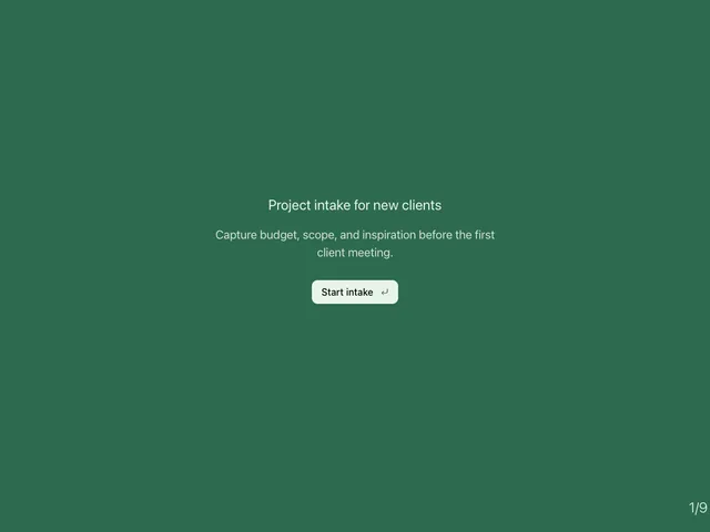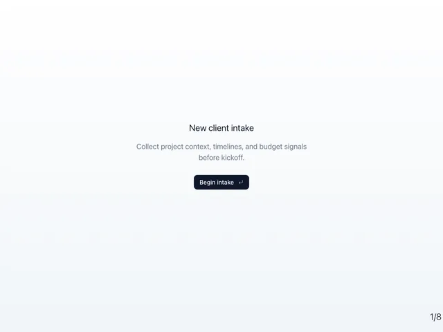 A branded intake form that collects project details, timelines, and budgets from new clients.