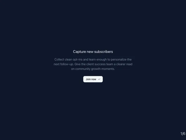 A form for the client success team to grow your audience around community growth workflows. Collect opt-ins, audience context, and preferences without making signup feel heavy.