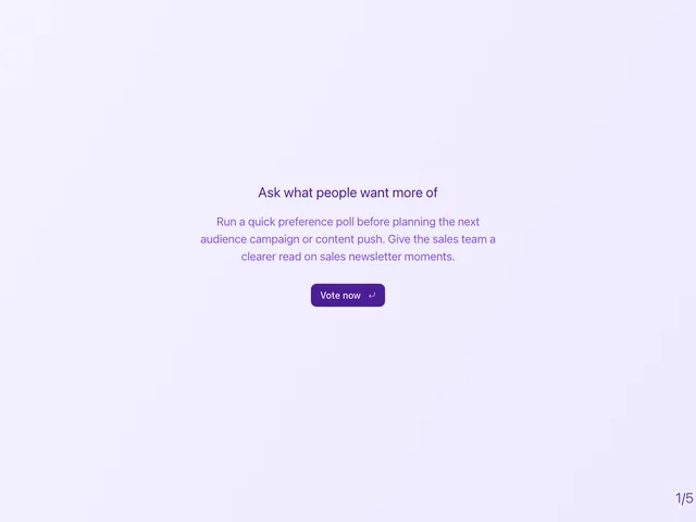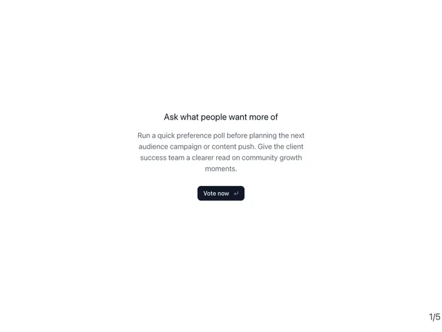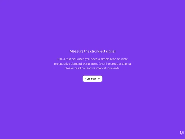 A poll for the product team to capture demand around feature interest workflows. Run a simple poll to learn which offer, message, or next step generates the strongest interest.