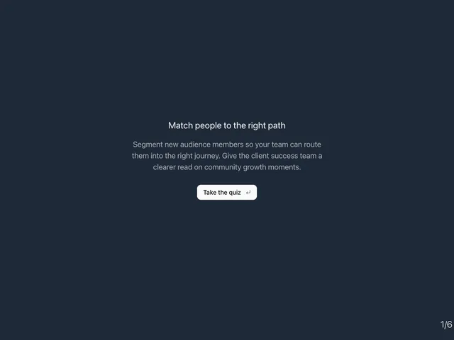 A quiz for the client success team to grow your audience around community growth workflows. Use a short segmentation quiz to route subscribers into the most relevant follow-up path.
