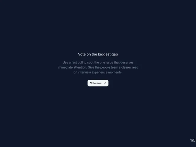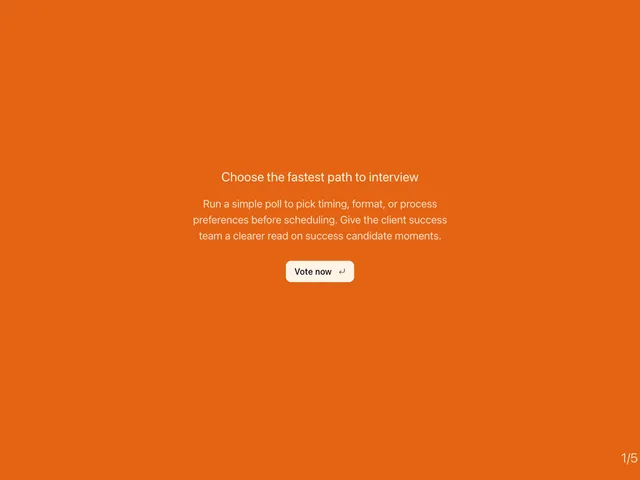 A poll for the people team to gather feedback around interview experience workflows. Run a lightweight poll to surface the strongest sentiment signal from a specific moment.