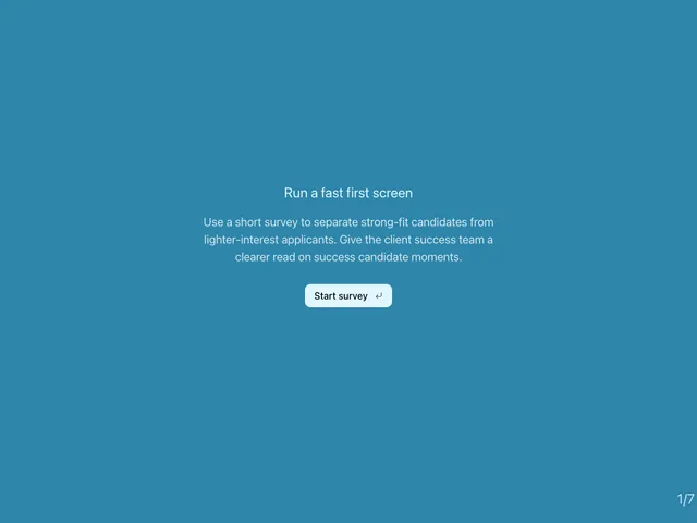 A survey for the client success team to hire talent around success candidate workflows. Use a structured survey to understand motivation, confidence, and fit before scheduling time.
