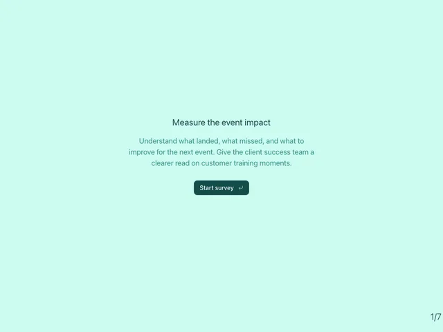 A survey for the client success team to run events around customer training workflows. Measure satisfaction, clarity, and follow-up interest after a live or virtual event.
