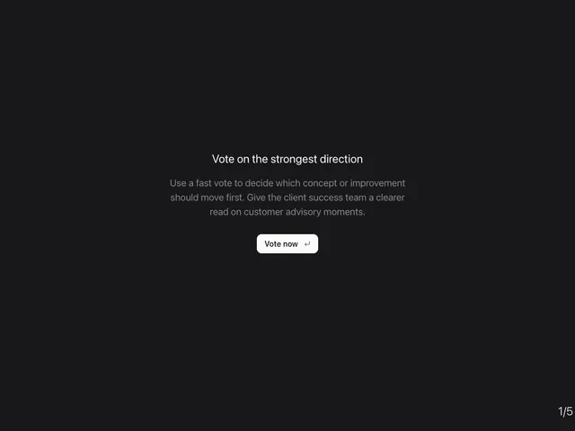A poll for the client success team to test ideas around customer advisory workflows. Run a lightweight priority poll before the team invests in deeper concept work.