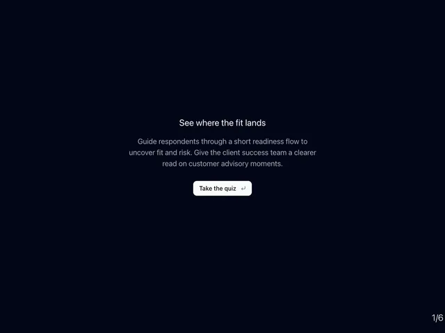 A quiz for the client success team to test ideas around customer advisory workflows. Turn concept testing into a short quiz that surfaces readiness, fit, and missing inputs.