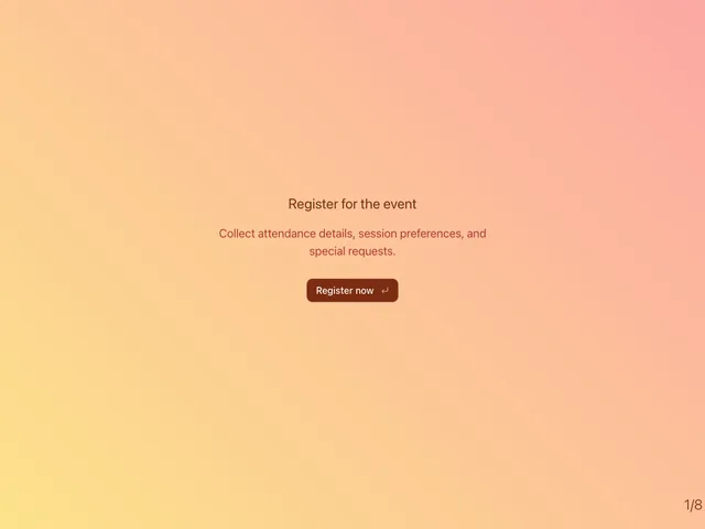A form for the sales team to run events around buyer briefing workflows. Collect attendee details, logistics, and session needs in one polished registration flow.