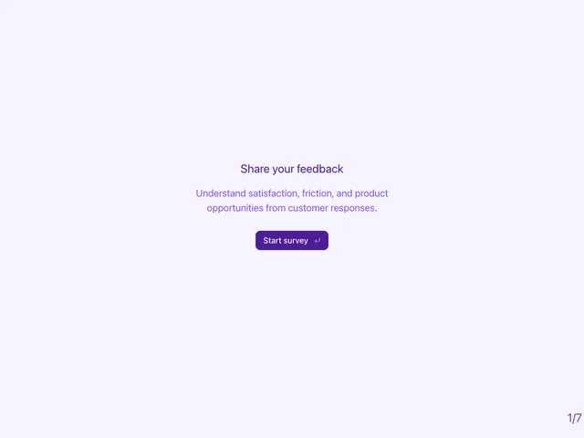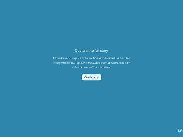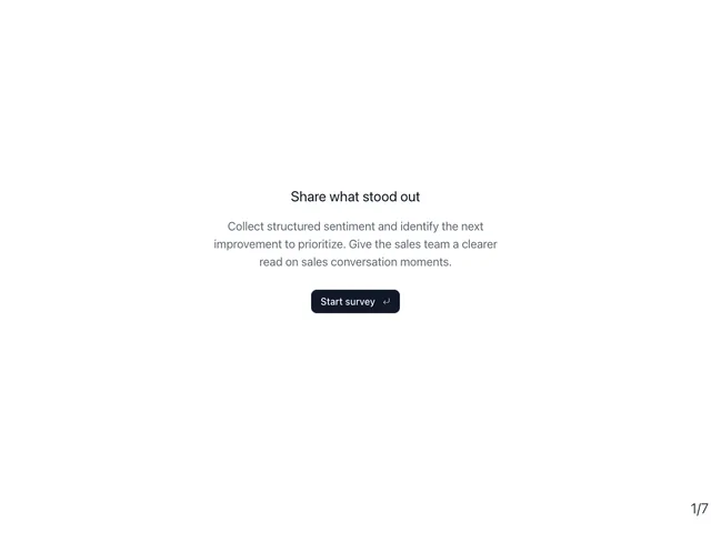 A survey for the sales team to gather feedback around sales conversation workflows. Capture structured sentiment, friction, and improvement ideas in a polished feedback flow.