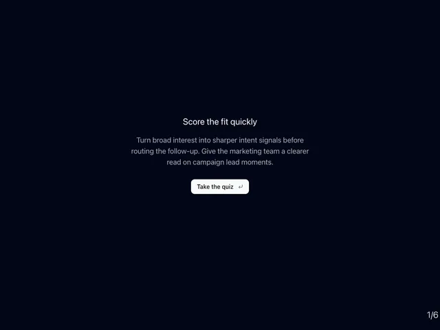 A quiz for the marketing team to capture demand around campaign lead workflows. Use a short qualification quiz to sort fresh demand by urgency, fit, and next step.