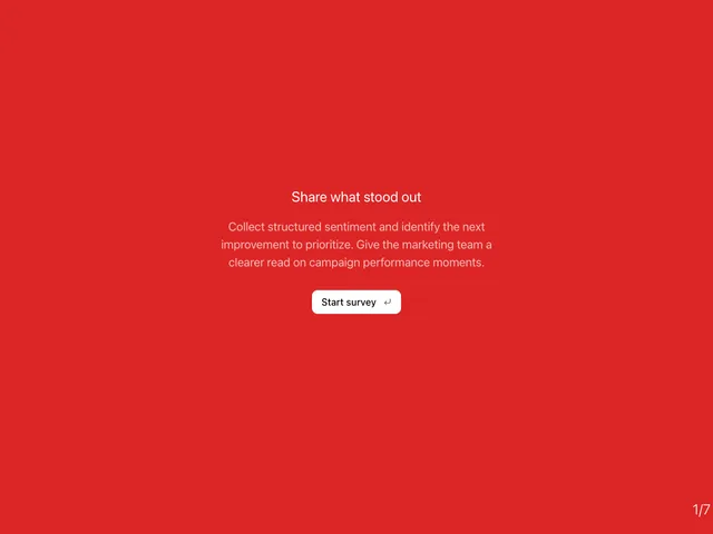 A survey for the marketing team to gather feedback around campaign performance workflows. Capture structured sentiment, friction, and improvement ideas in a polished feedback flow.