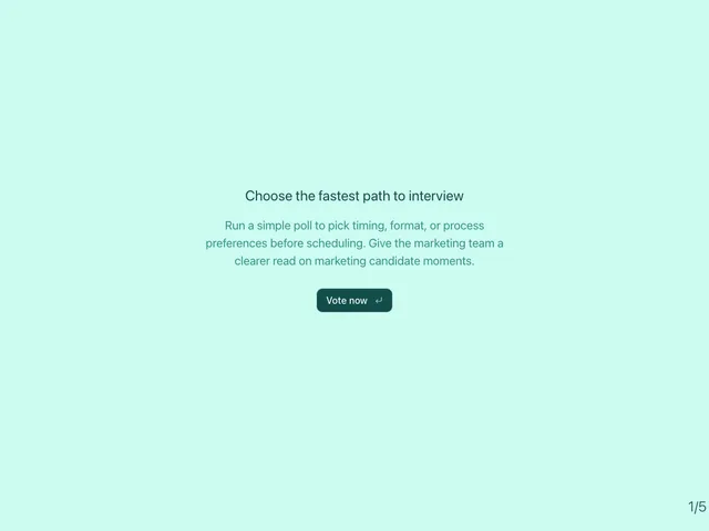 A poll for the marketing team to hire talent around marketing candidate workflows. Use a quick poll to coordinate interview preferences, timing, and process expectations.