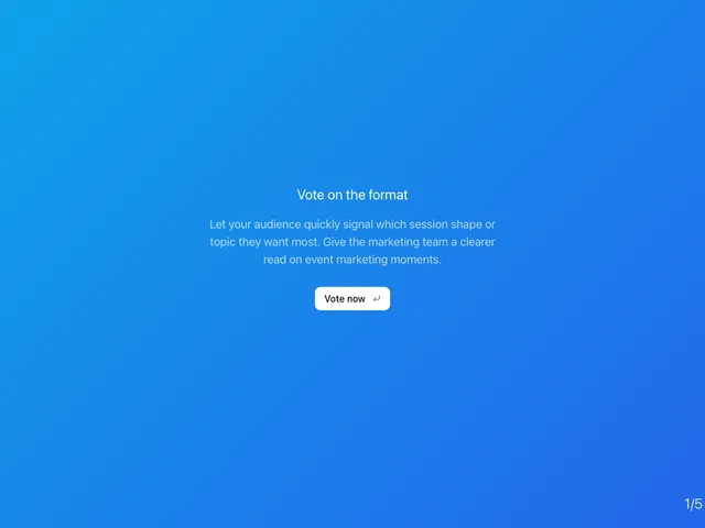 A poll for the marketing team to run events around event marketing workflows. Use a quick poll to choose topics, formats, and priorities before an event goes live.