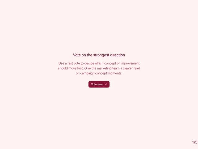 A poll for the marketing team to test ideas around campaign concept workflows. Run a lightweight priority poll before the team invests in deeper concept work.