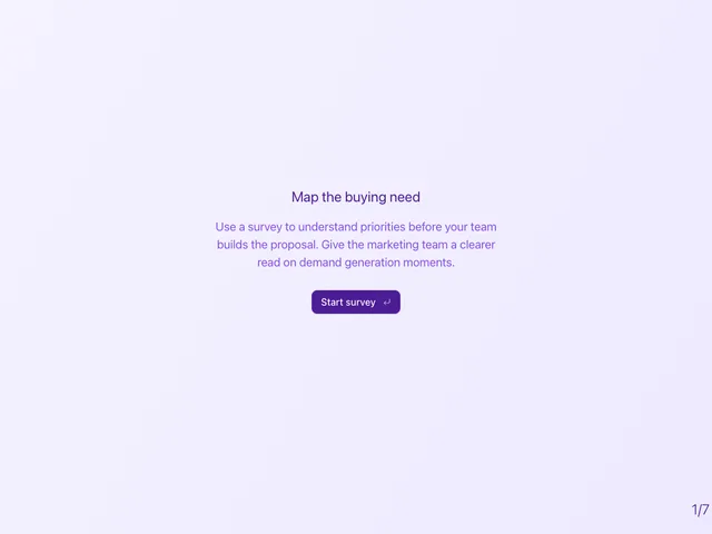 A survey for the marketing team to win more business around demand generation workflows. Understand urgency, fit, and buying criteria before the team sends the next proposal.