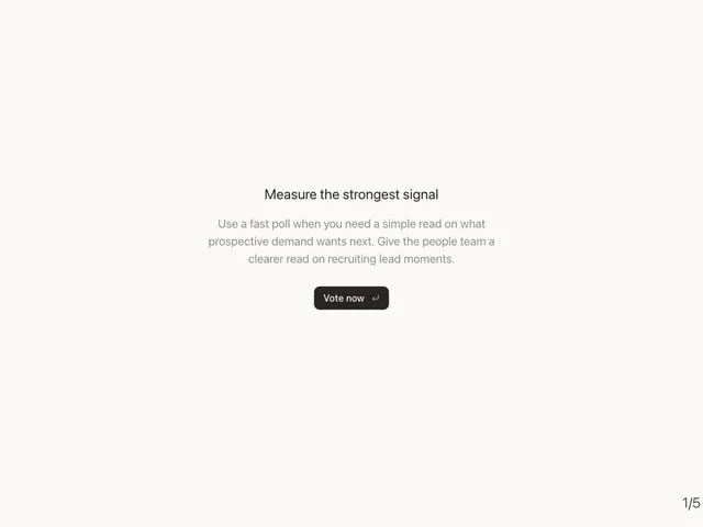 A poll for the people team to capture demand around recruiting lead workflows. Run a simple poll to learn which offer, message, or next step generates the strongest interest.