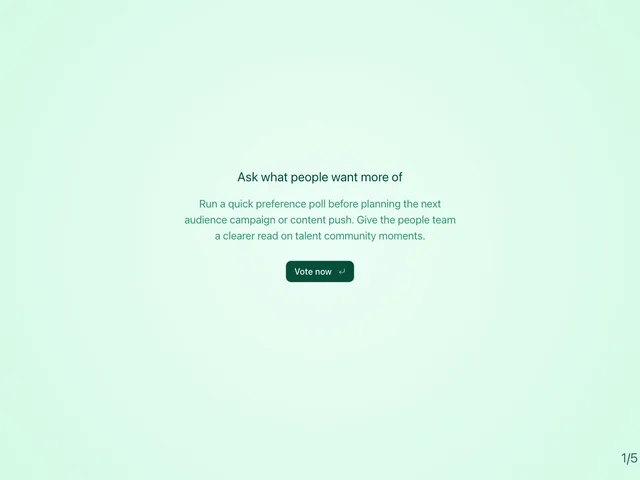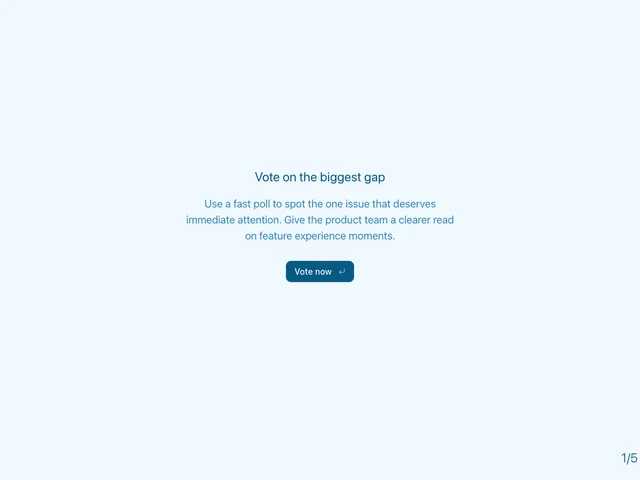 A poll for the product team to gather feedback around feature experience workflows. Run a lightweight poll to surface the strongest sentiment signal from a specific moment.