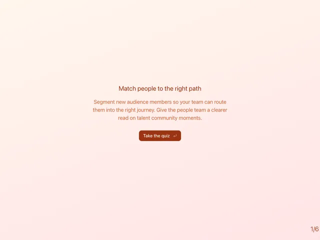A quiz for the people team to grow your audience around talent community workflows. Use a short segmentation quiz to route subscribers into the most relevant follow-up path.