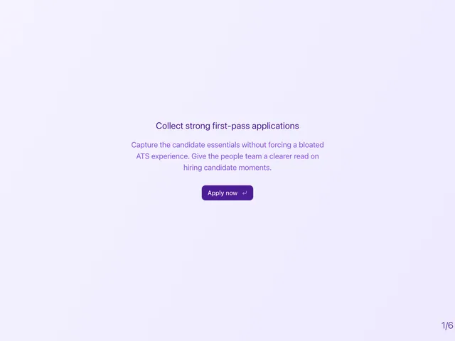 A form for the people team to hire talent around hiring candidate workflows. Collect applicant details, role preferences, and core context in one streamlined form.