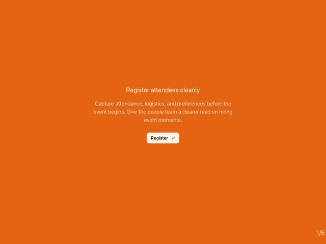 A form for the people team to run events around hiring event workflows. Collect attendee details, logistics, and session needs in one polished registration flow.