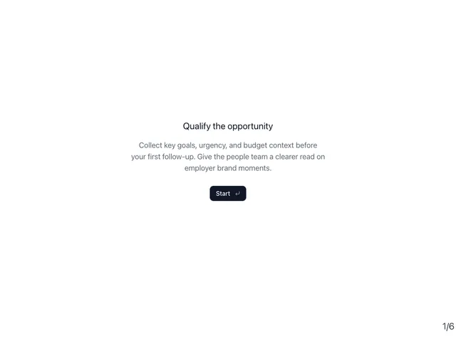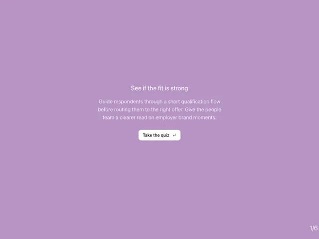 A quiz for the people team to win more business around employer brand workflows. Turn top-of-funnel interest into clearer sales signals with a short qualification quiz.