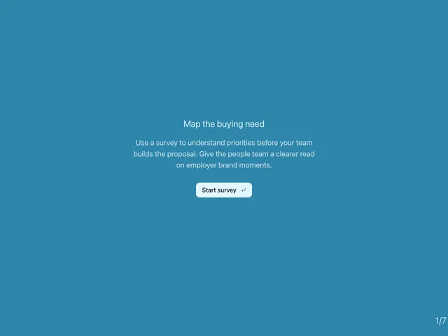 A survey for the people team to win more business around employer brand workflows. Understand urgency, fit, and buying criteria before the team sends the next proposal.