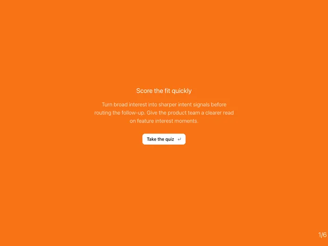 A quiz for the product team to capture demand around feature interest workflows. Use a short qualification quiz to sort fresh demand by urgency, fit, and next step.