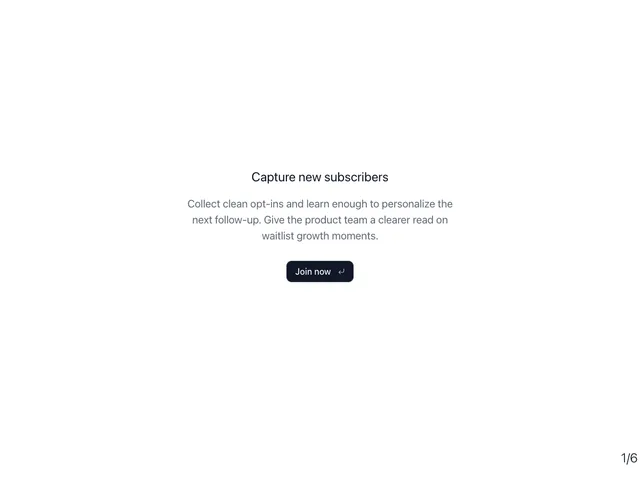 A form for the product team to grow your audience around waitlist growth workflows. Collect opt-ins, audience context, and preferences without making signup feel heavy.