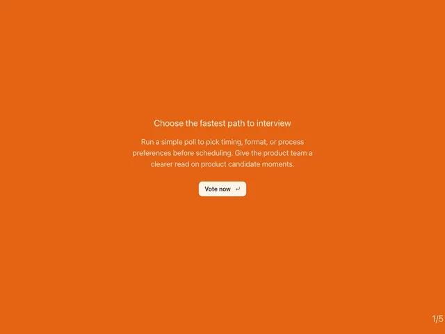 A poll for the product team to hire talent around product candidate workflows. Use a quick poll to coordinate interview preferences, timing, and process expectations.