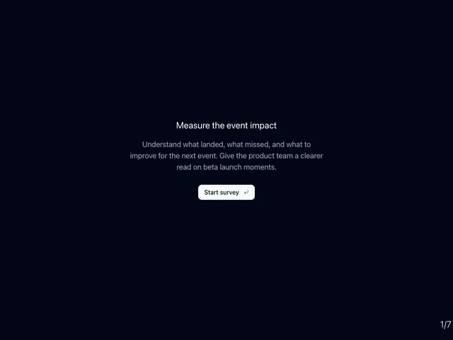 A survey for the product team to run events around beta launch workflows. Measure satisfaction, clarity, and follow-up interest after a live or virtual event.