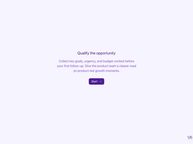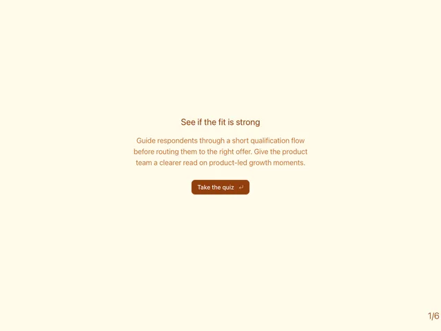 A quiz for the product team to win more business around product-led growth workflows. Turn top-of-funnel interest into clearer sales signals with a short qualification quiz.