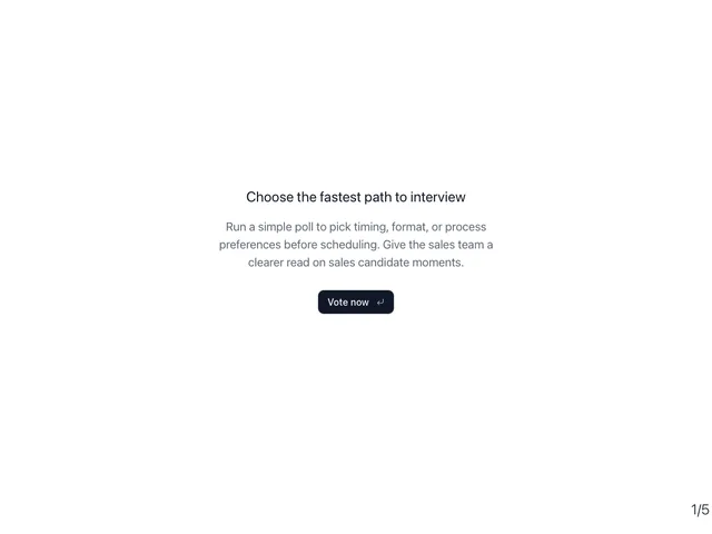 A poll for the sales team to hire talent around sales candidate workflows. Use a quick poll to coordinate interview preferences, timing, and process expectations.