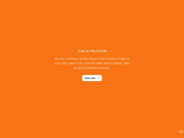 A poll for the sales team to run events around buyer briefing workflows. Use a quick poll to choose topics, formats, and priorities before an event goes live.