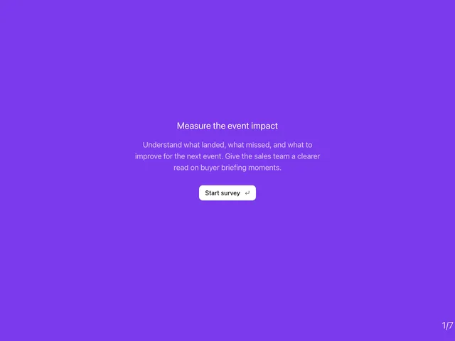 A survey for the sales team to run events around buyer briefing workflows. Measure satisfaction, clarity, and follow-up interest after a live or virtual event.
