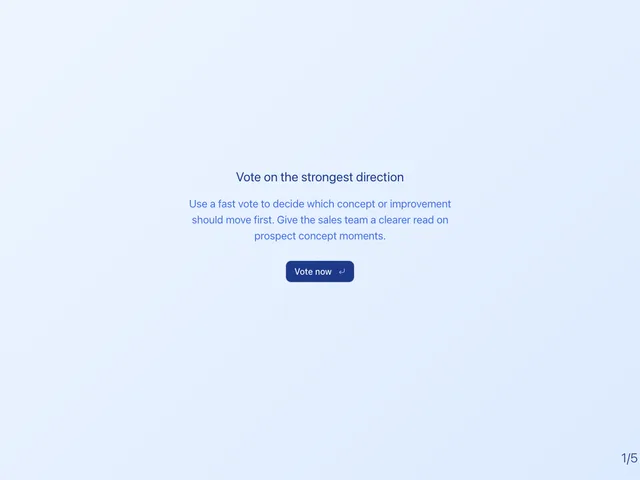A poll for the sales team to test ideas around prospect concept workflows. Run a lightweight priority poll before the team invests in deeper concept work.